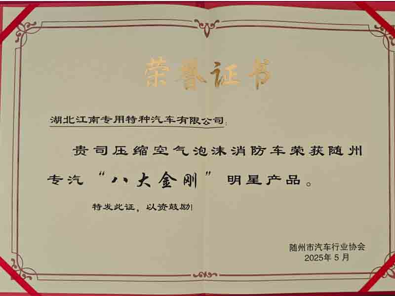 熱烈祝賀公司壓縮空氣泡沫消防車榮獲隨州專汽“八大金剛”明星產(chǎn)品。