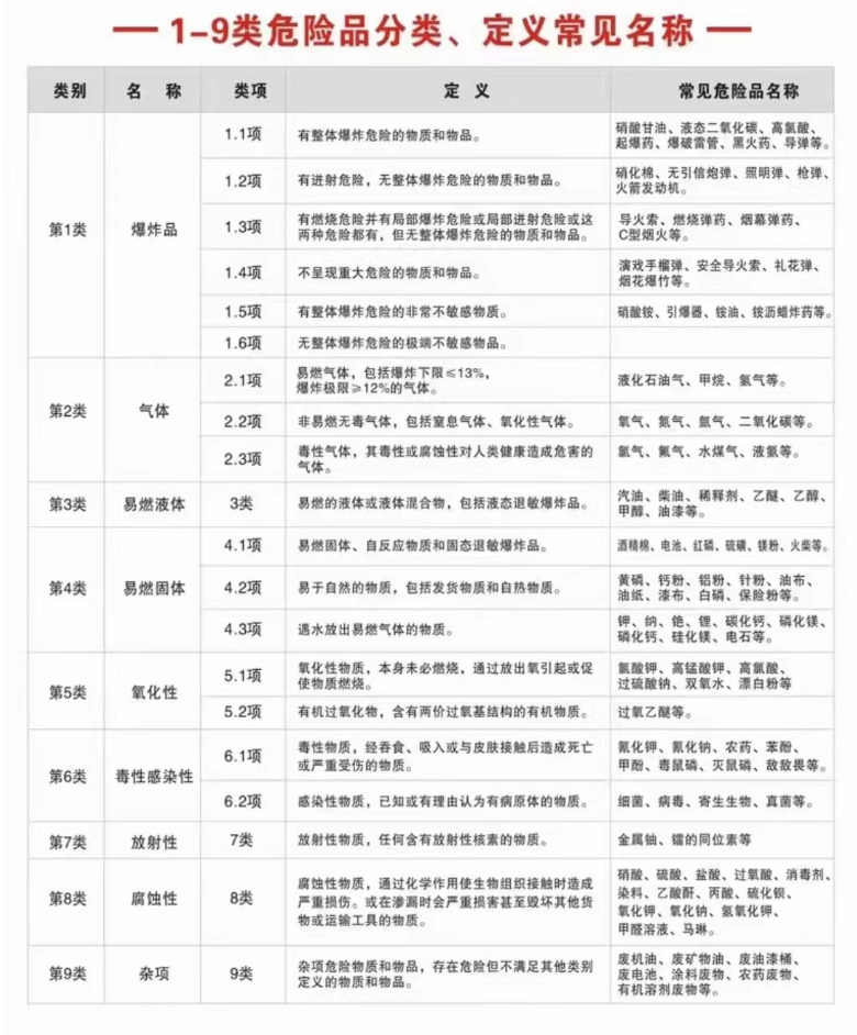 1-9類危險品分類、定義常見名稱